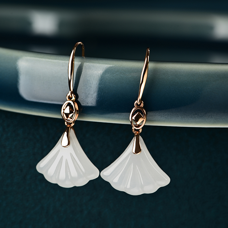 玉柔颜白玉金镶耳饰