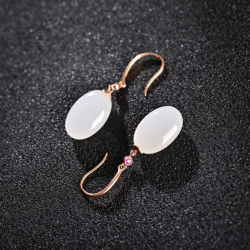 玉柔颜白玉金镶耳饰