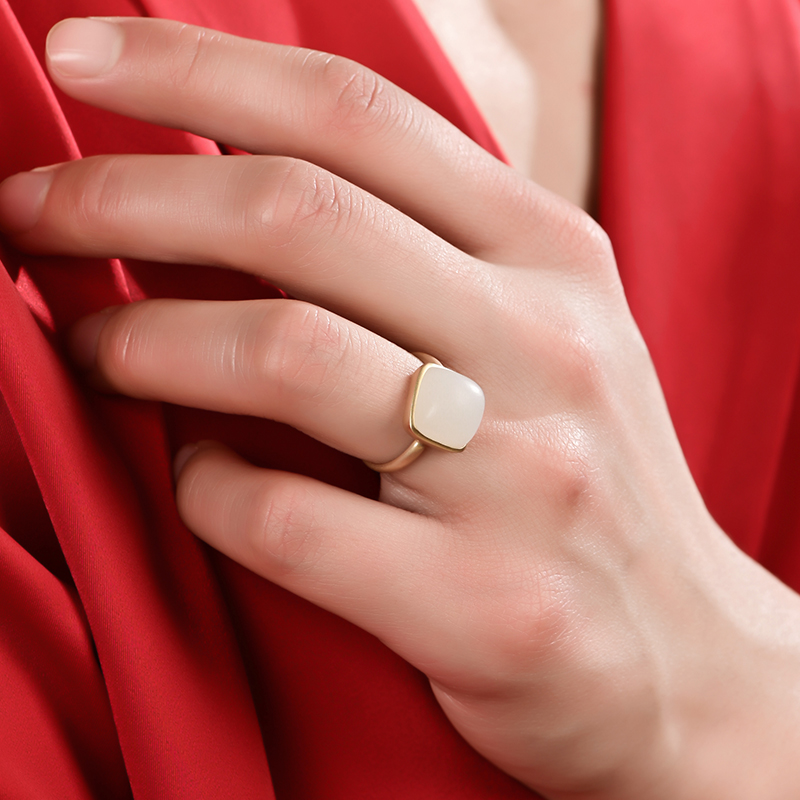 方糖白玉戒指