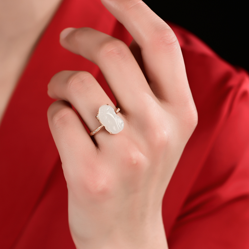金镶白玉戒指